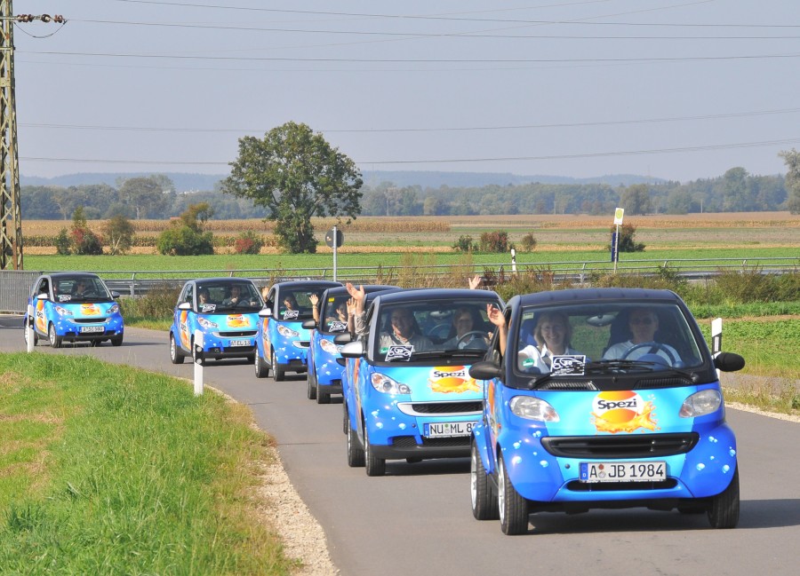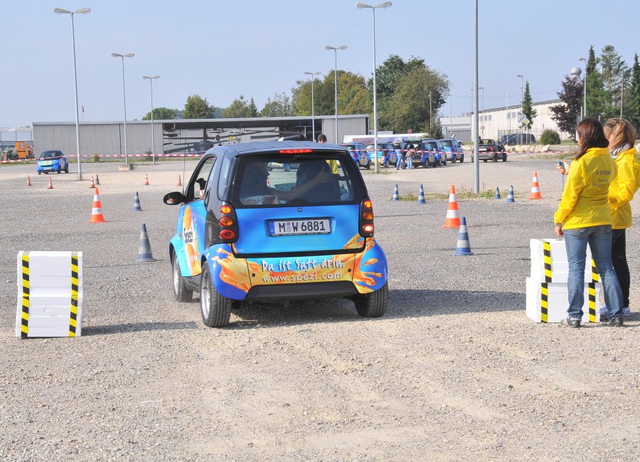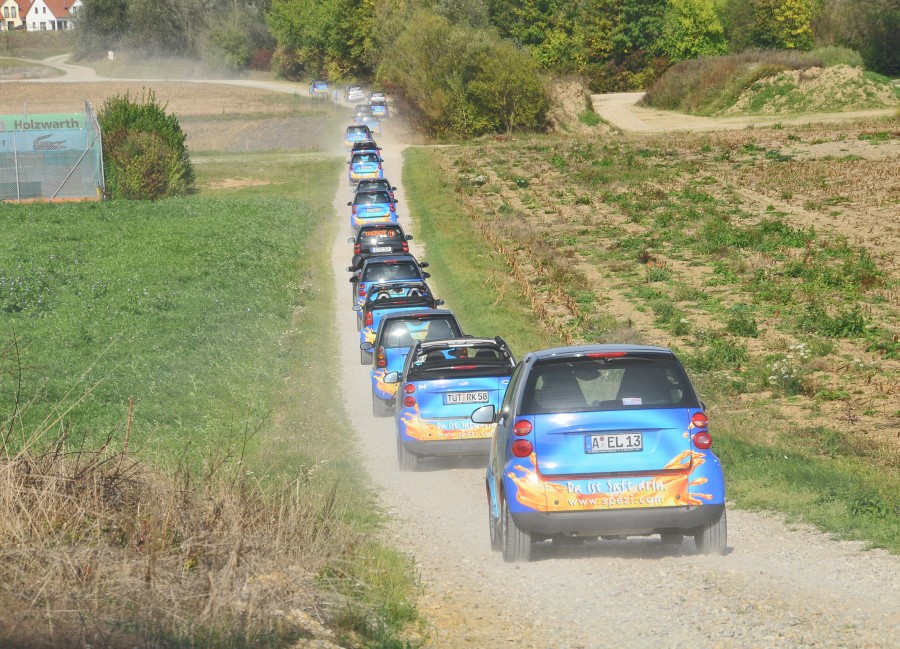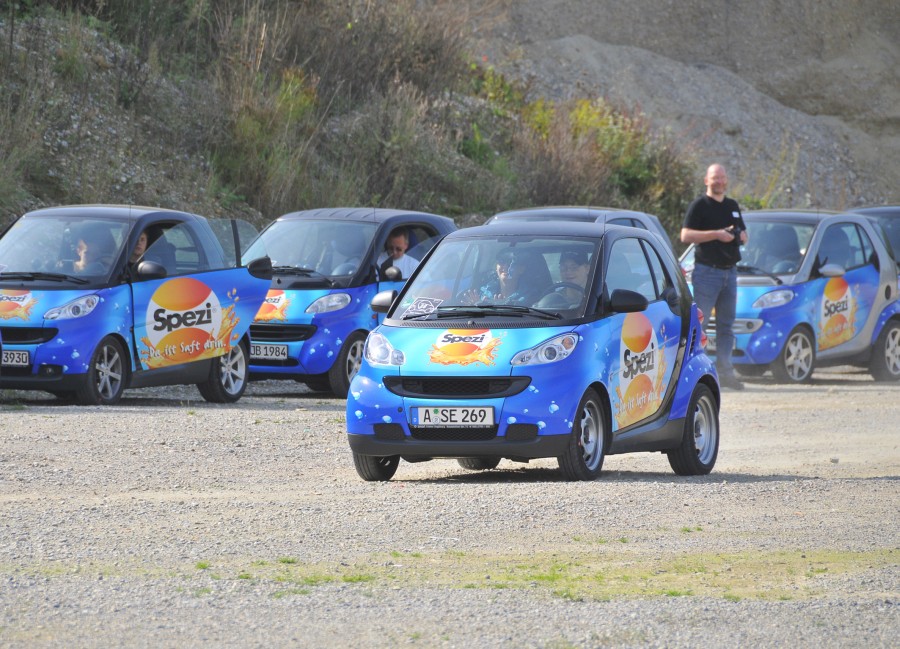 An einem sonnigen Samstag trafen sich viele Spezi-Smart-Fans zur 1. Smart-Challenge Deutschlands. Über 8 Stationen im Umland von Augsburg wurde das Geschick eines jeden Einzelnen getestet. Es wurde das Bremsgefühl genauso getestet wie das Einparken auf Zeit oder das gleichmäßige Fahren. So konnte jeder Smart-Fahrer sein Fahrzeug noch besser kennenlernen. Ein Hingucker war es alle Mal, denn so viele Smart – aufgereiht wie Perlen auf einer Perlenkette – hat man so noch nie gesehen. Am Abend bei einem gemütlichen Abendessen wurden dann die Challenge-Gewinner gekührt.